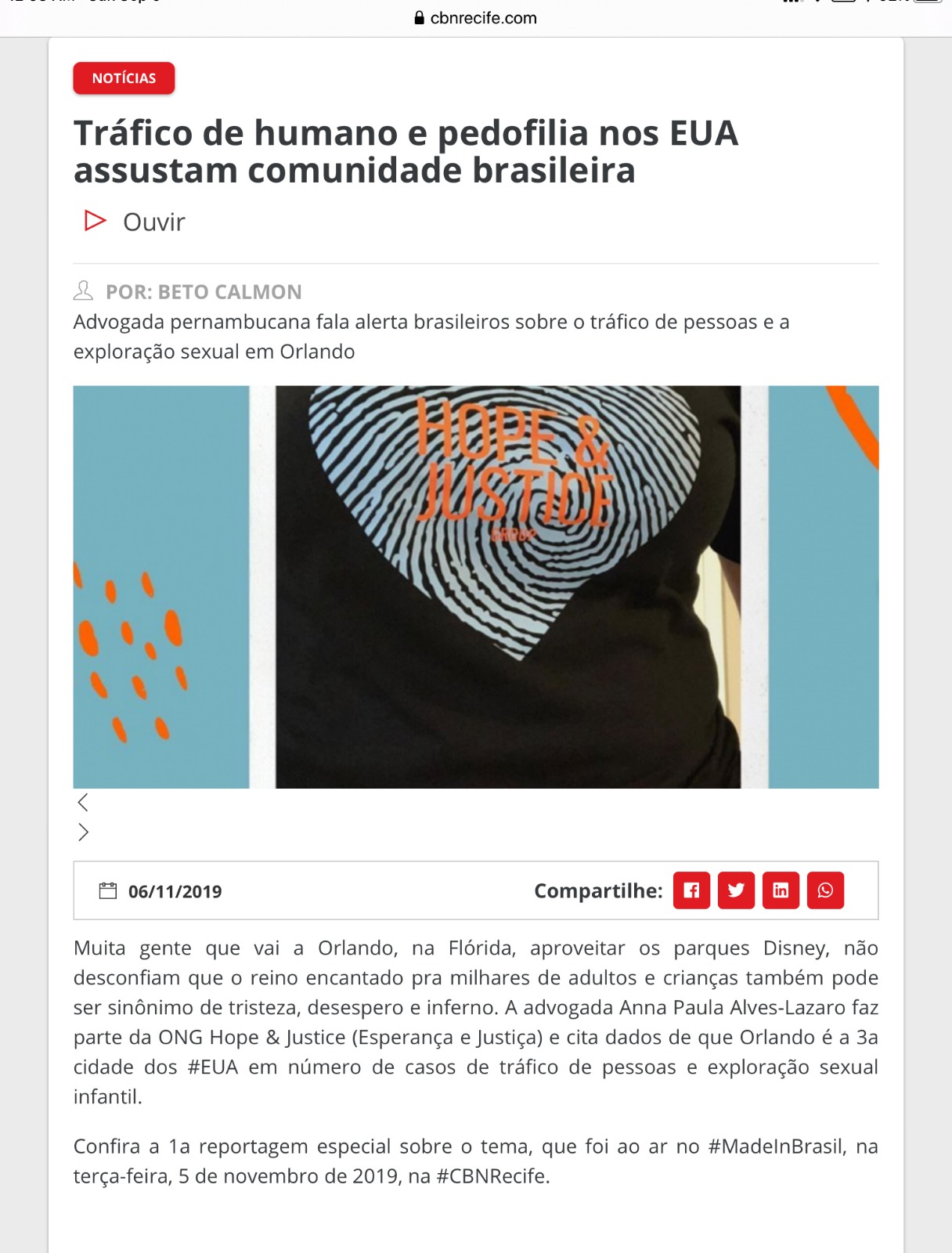 A lawyer, social communicator, and public relations professional, CEO and founder of the Hope & Justice Foundation, creator of the Human X Conference, and an international speaker, writer, and activist against human trafficking, domestic violence, and child sexual abuse.